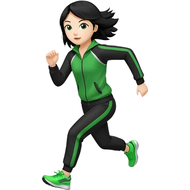 Girl with black hair and green and black track suit running emoji
