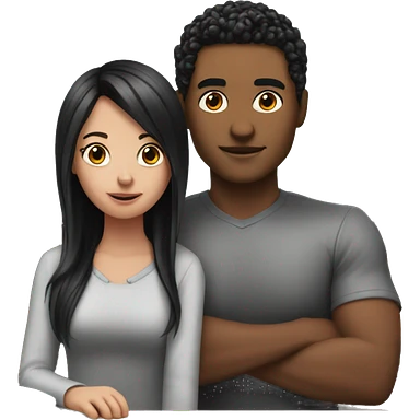 The boy with the hairstyle sat in the middle of the desk next to the girl who has black hair and red strands emoji