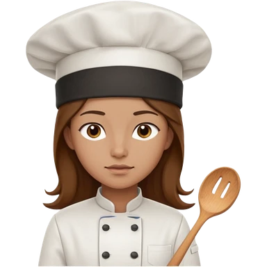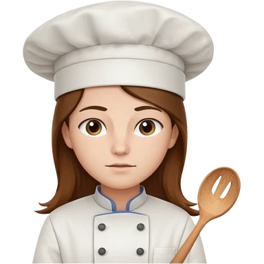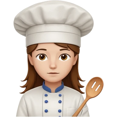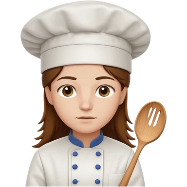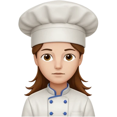 Long brown hair, serious, wearing chef uniform and chef hat emoji