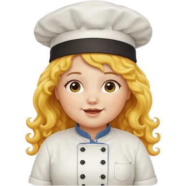 girl, yellow Long curly hair, happy, wearing chef uniform and chef hat emoji