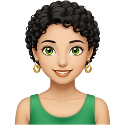 girl showing happiness, medium skin tone, short curly black hair, gold earrings, green eyes Minimal emoji showing happiness, medium skin tone, short curly black hair, gold earrings, green eyes emoji