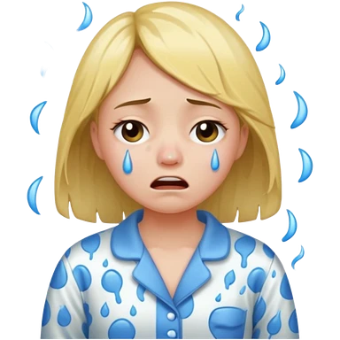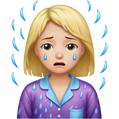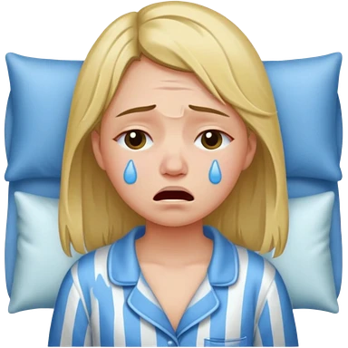 a girl laying sadly in her bed with her whiye fluffy covers over her and her in her silk pajamas emoji