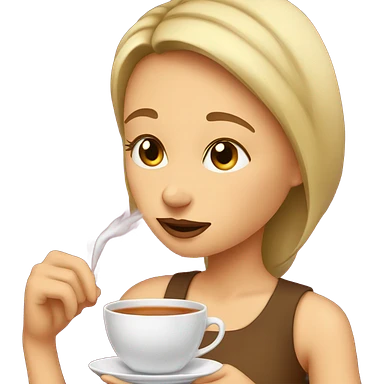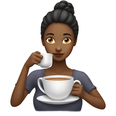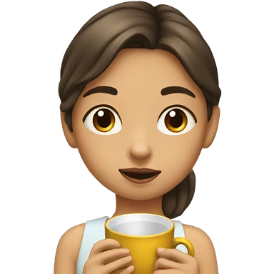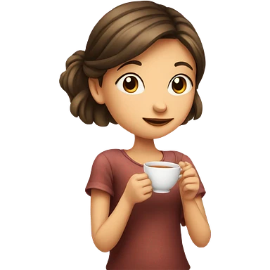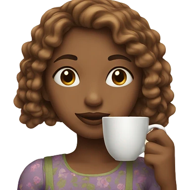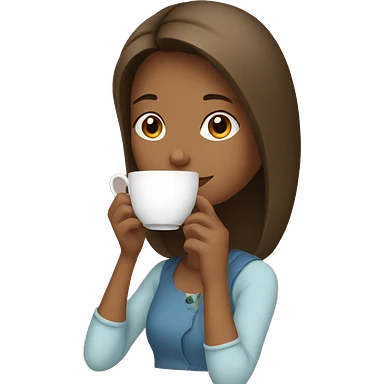 Girl sipping tea with long and brown hair and Her hair is braided. emoji