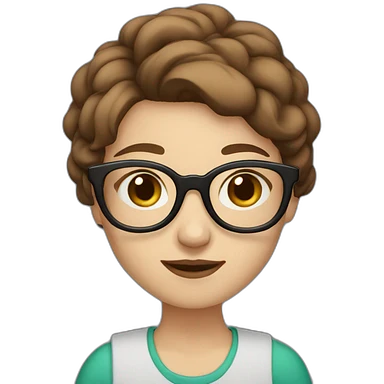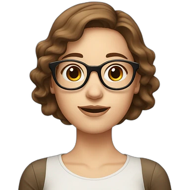 white girl brown hair wearing rounded glasses raising a hand emoji