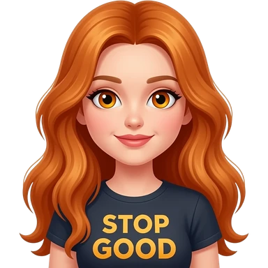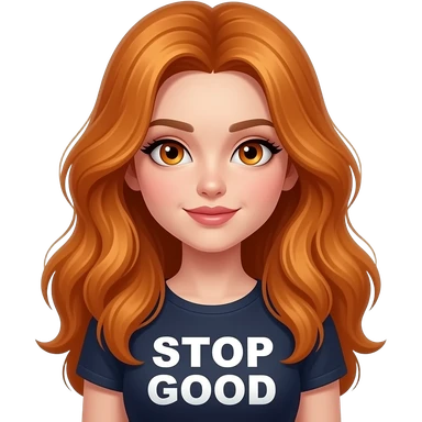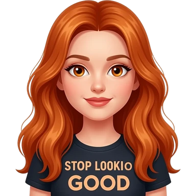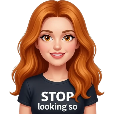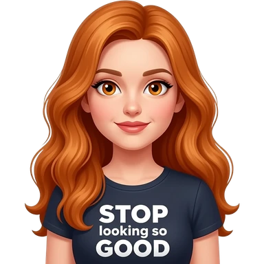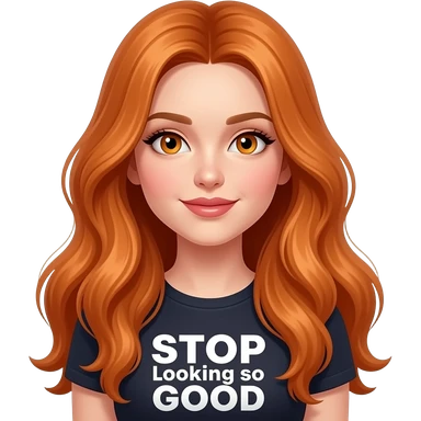 sexy girl with overlong ginger hair and ginger eyes a top with STOP looking so GOOD written on it emoji