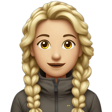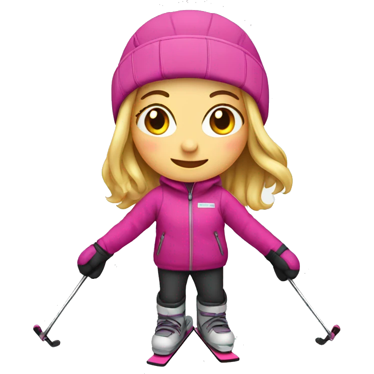 Light pink, snowy, ski girl with blue eyes standing with skis and brown hair emoji