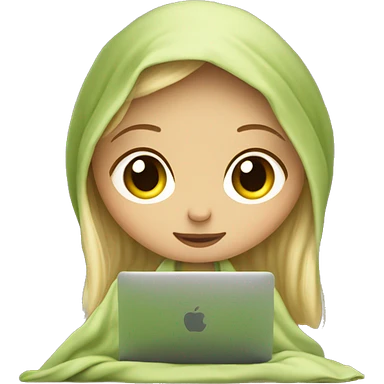 blonde girl sits under a blanket with a glass of matcha and works on a macbook emoji