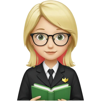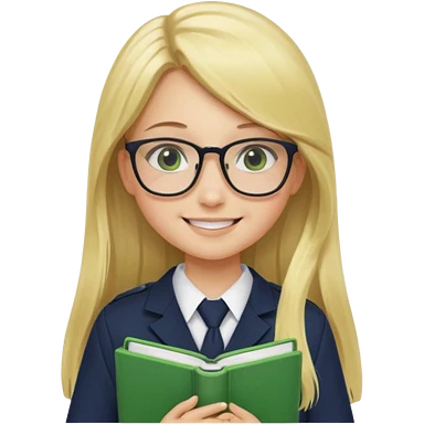 Girl student wearing uniform, glasses, hold green book in front of their chest, blonde long straight hair, white skin emoji | AI Emoji Generator