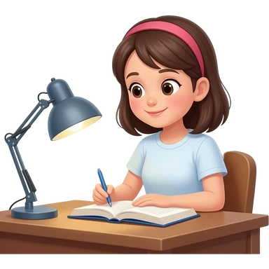 Girl studying in her decorated table emoji