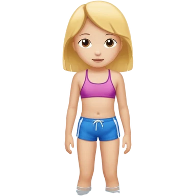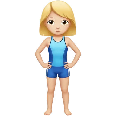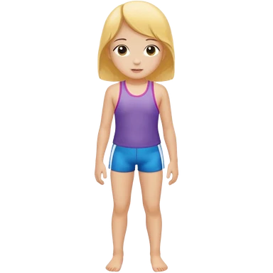 A girl in a swimsuit is standing by the pool with dark hair and brown eyes, her swimsuit is purple, she is a swimmer emoji