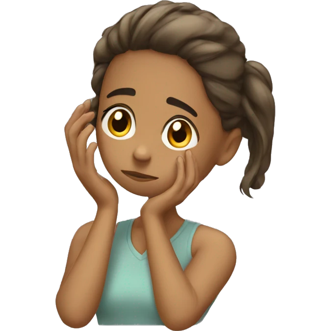girl touches her hair and is sad emoji | AI Emoji Generator