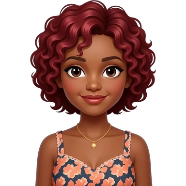 girl with dark skin rede hairs short curly hairs and wear a stylish dress emoji