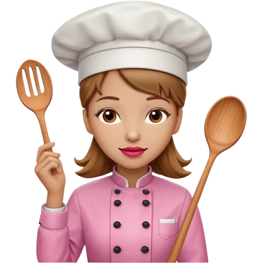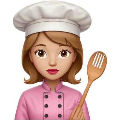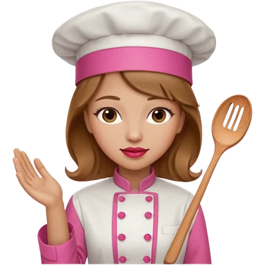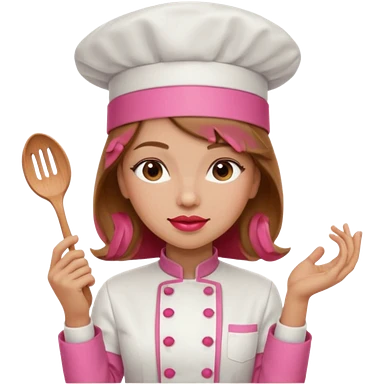 Girl in pink chef outfit, light brown hair, light skin, red lipstick emoji