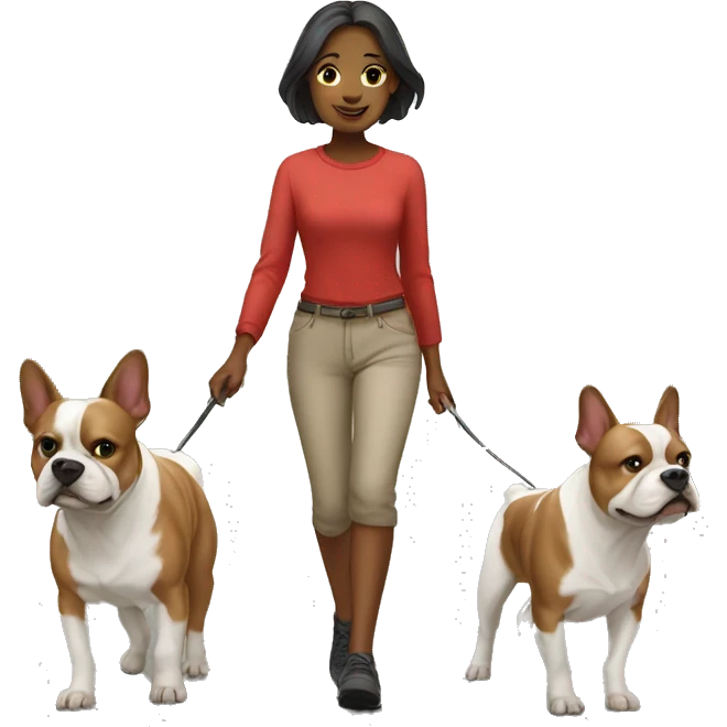 Girl walking two french buldogs emoji | AI Emoji Generator