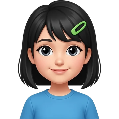 cute girl wear a red frok and golden hairs and wear green hair clip emoji