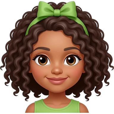 afro hairs girl weaer with brown hairs wear a green bow hair clip emoji