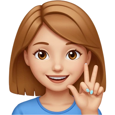 Girl smiling and showing her middle finger emoji