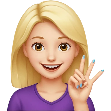 girl with blonde hair and green eyes, showing her finger emoji