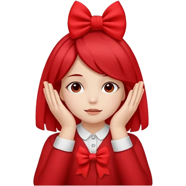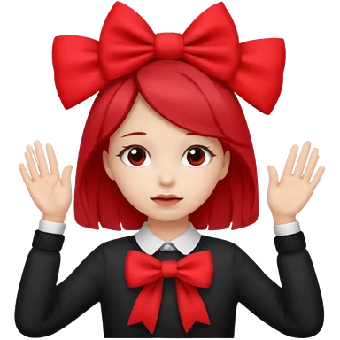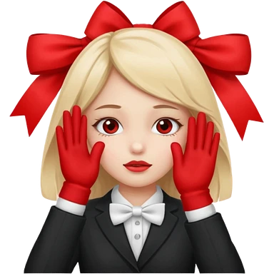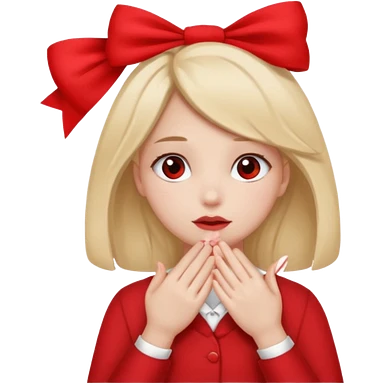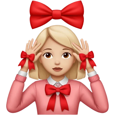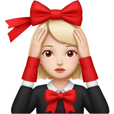 π§πΌπππ©: girl with 2 ponytails covering her eyes with both hands, with a cute little pink bow on the side of her hair and below her in the background, 2 big red flags. emoji | AI Emoji Generator