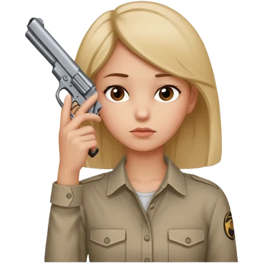Creat a girl with a straight face holding a gun on her hip emoji
