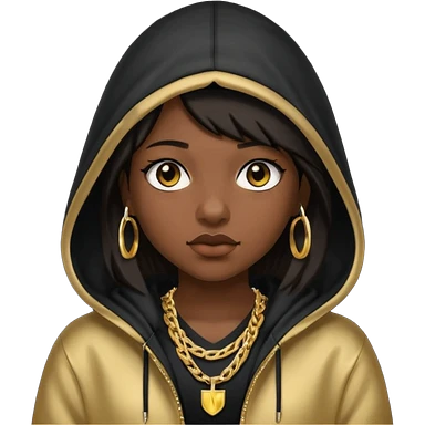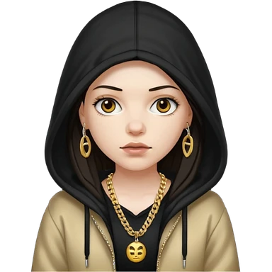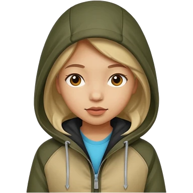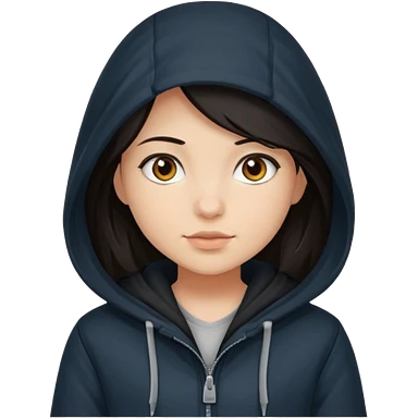 girl with a hood on with dark hair emoji | AI Emoji Generator