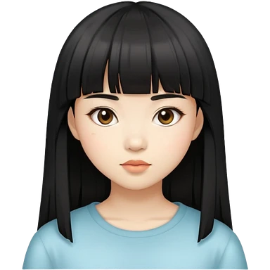 A girl with asian bangs and straight and slightly long hair, look like an asian emoji
