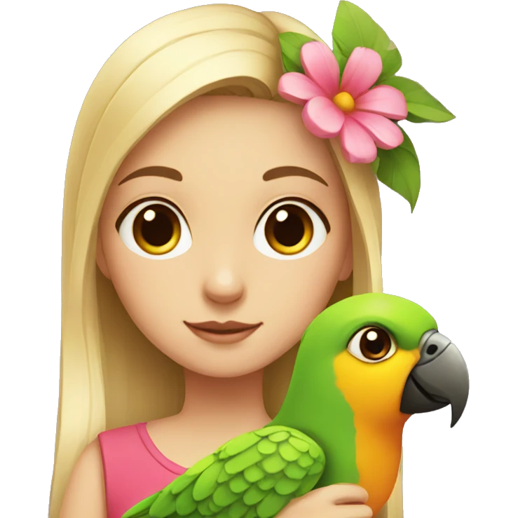 girl with a parrot with a flower emoji | AI Emoji Generator