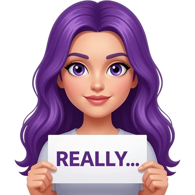 sexy girl with long purple hair and purple eyes holding a REALLY... sign emoji