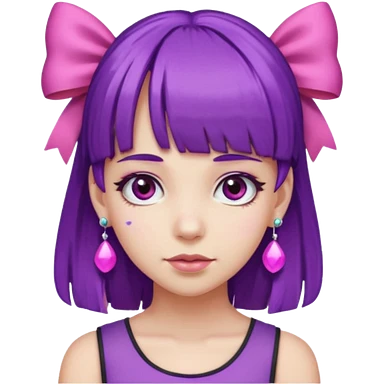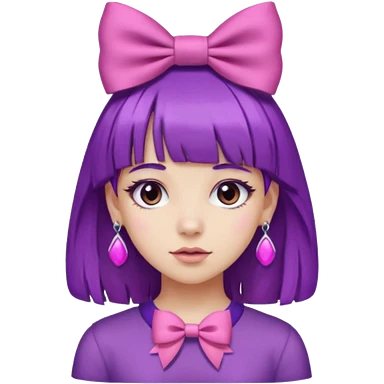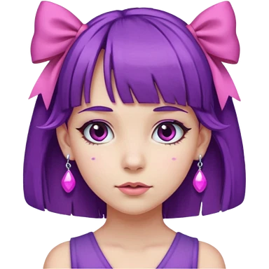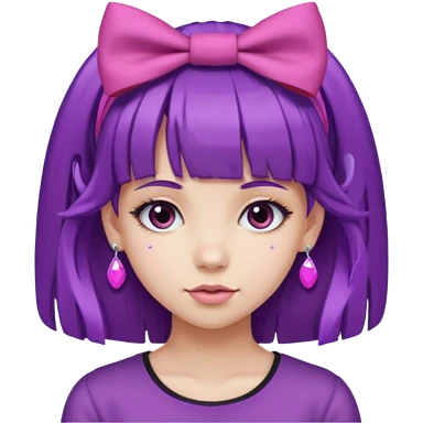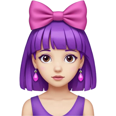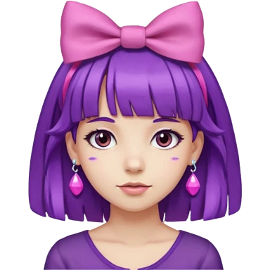 girl with bangs and purple hair and pink hairbow on the side of head and earrings emoji