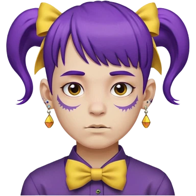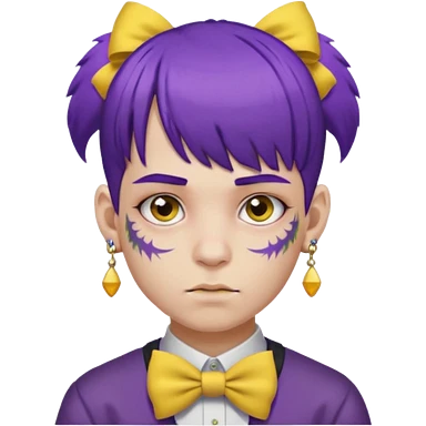 boy with bangs and purple hair and yellow hairbow on side and earrings and very heavy face tattoos emoji
