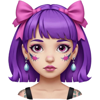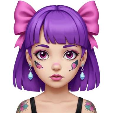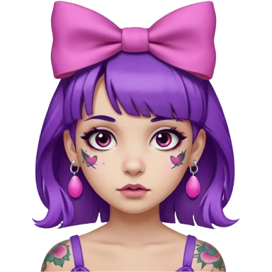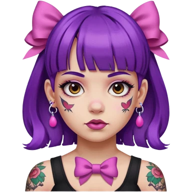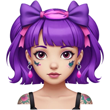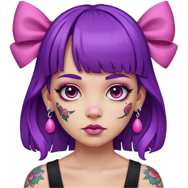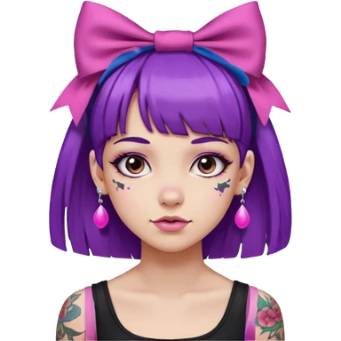 girl with bangs and purple hair and pink hairbow on the side of head and earrings and heavy face tattoos emoji