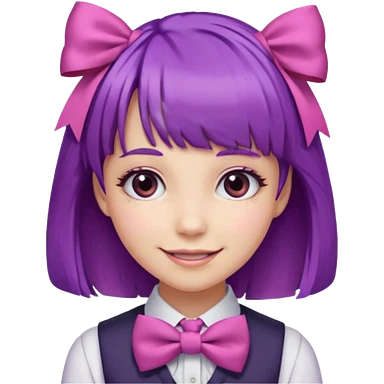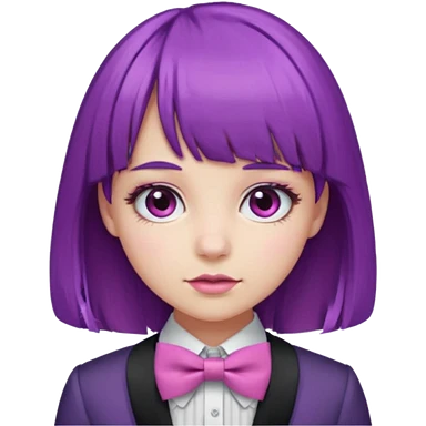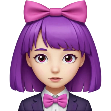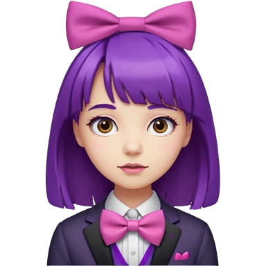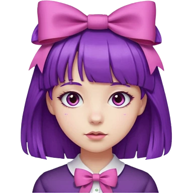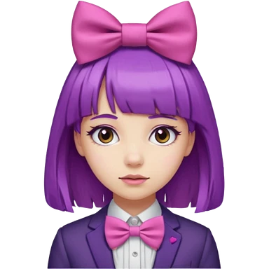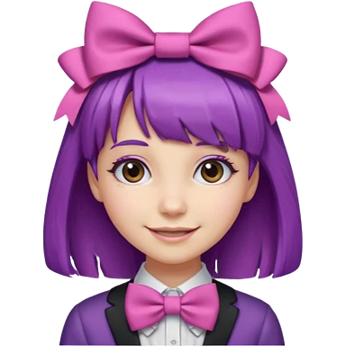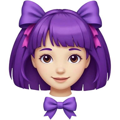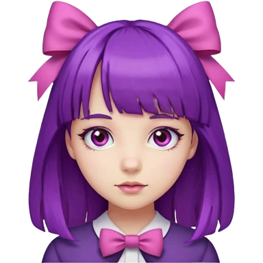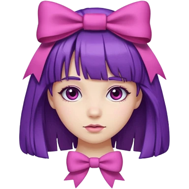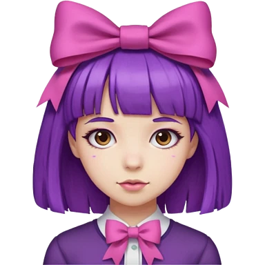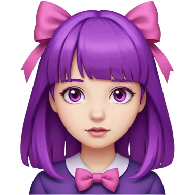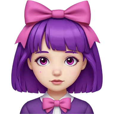 girl with bangs and purple hair and pink hairbow emoji | AI Emoji Generator