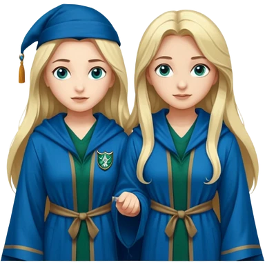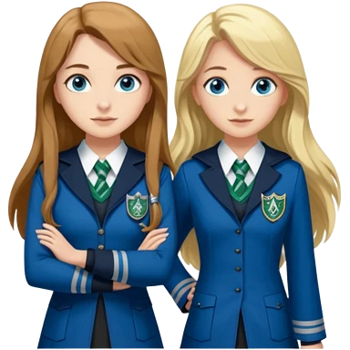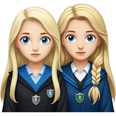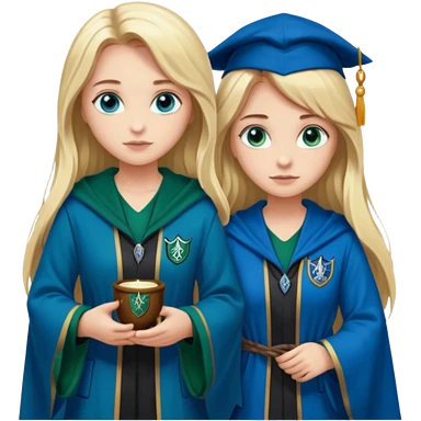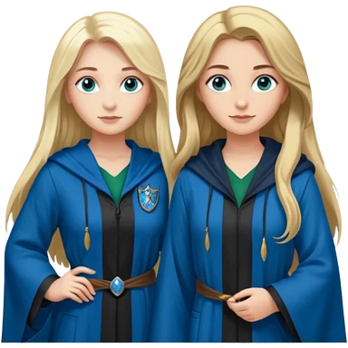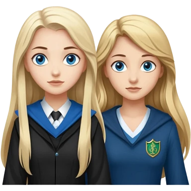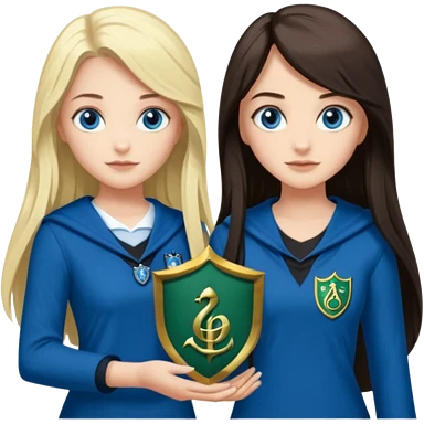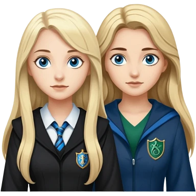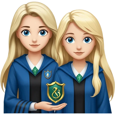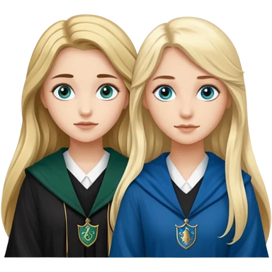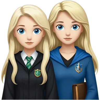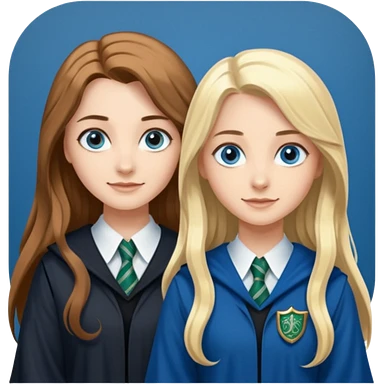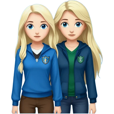 hot Slytherin girl with long blonde hair, blue eyes and big boobs and pretty ravenclaw girl with long brown hair and blue eyes emoji