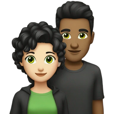 Girl with black straight hair and green eyes with tall white men with brown short hair emoji | AI Emoji Generator