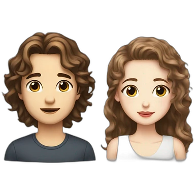 a girl with light brown wavy medium length ir with her tall dark brown straight hair boyfriend. the girl has hazel eyes and the boy has blue eyes emoji