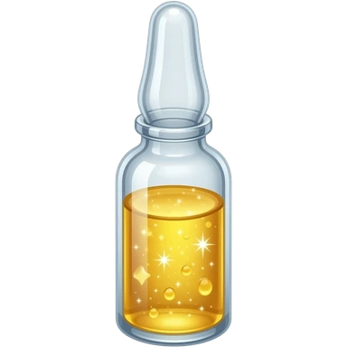small glass vial with golden glowing liquid, bright sparkle inside, magical shimmer, centered, 3D glossy emoji style, clean background emoji