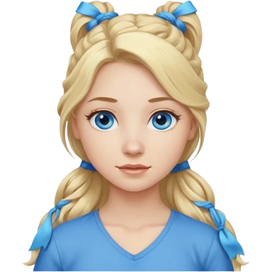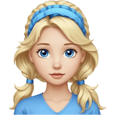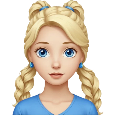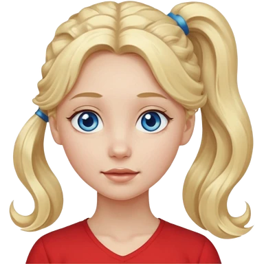 A pale girl with blue eyes and long and blonde , wavy hair in a pony tail emoji