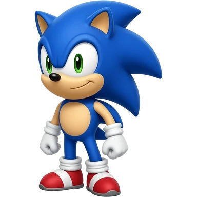 Blue anthropomorphic hedgehog, spiky hair, large green eyes, confident smile.Wearing red sneakers with white straps and white gloves. emoji