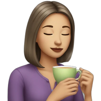Girl with dark hair and blue eyes sipping tea emoji
