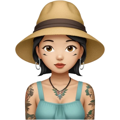 asian girl with neck tattoo and 2 string dress, bib boobs, fashion hat emoji