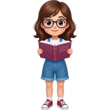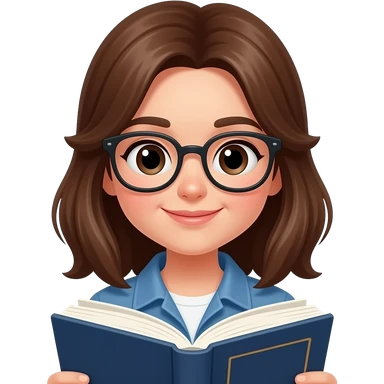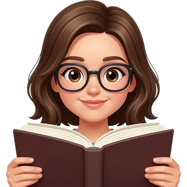 girl with bown hairs wear eye glasses and read book emoji
