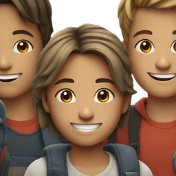 Three persons. one girl with not that long dark brown hair and with the blur jakcet. The other girl has light long brown hair and denim jacket and white dress and the guy with short brown hair and balck hoodie emoji
