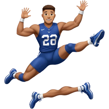 Blonde tall skinny man jumping hurdles in a Huntingdon Hawk track uniform emoji