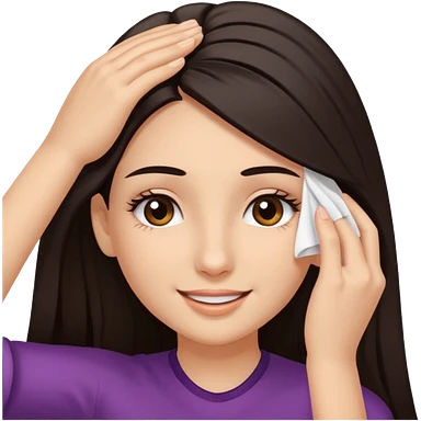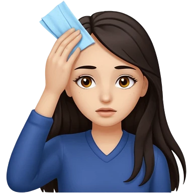 Girl with brown eyes and long brown hair wiping sweat off her forehead emoji | AI Emoji Generator