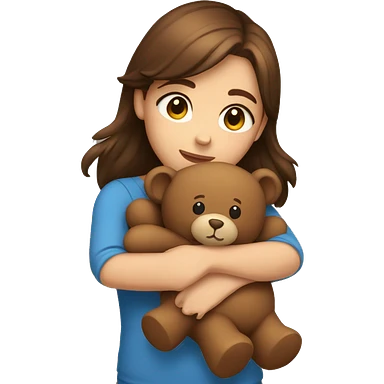 Girl with Brown hair and Brown eyes hugging a Brown teddy bear emoji