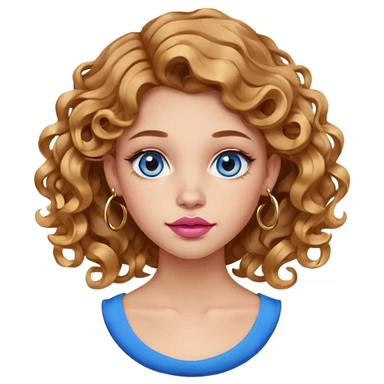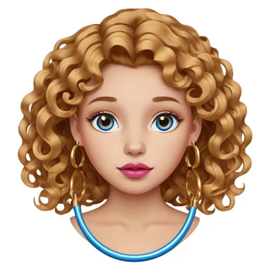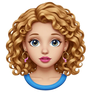 girl with light brown honey wavy hair (subtle side part and 2b curls). blue eyes. one golden nostril piercing (hoop). 6 golden hoop earrings. one golden hoop helix piercing. pink big lips. emoji