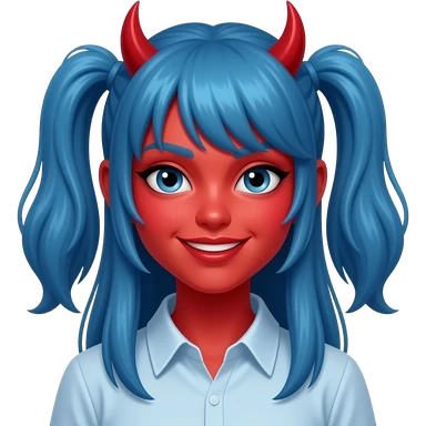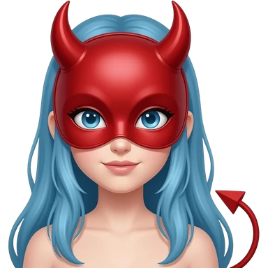 a long blue haired white skin girl with red devil mask and devil horns emoji