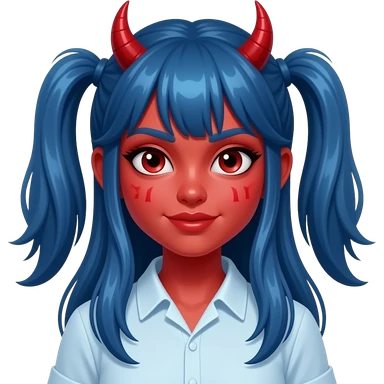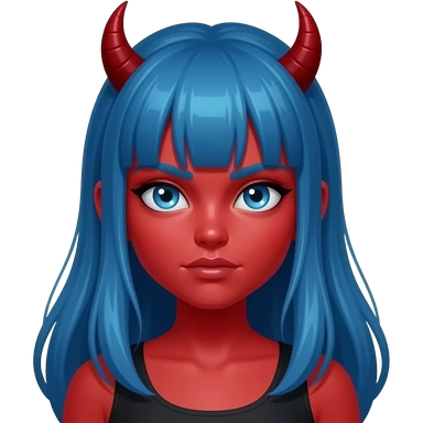 a long-haired red face paint devil girl with shirt change this grirls hairs into blue color dont change anything else emoji