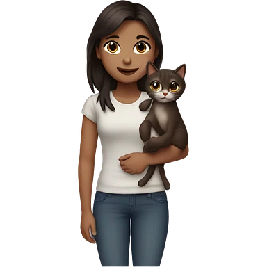 girl with brown hair holding a black cat and olive skin color with brown eye color emoji