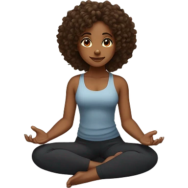 light skin black girl with dark brown chest length curly hair, in seated fire log yoga pose emoji